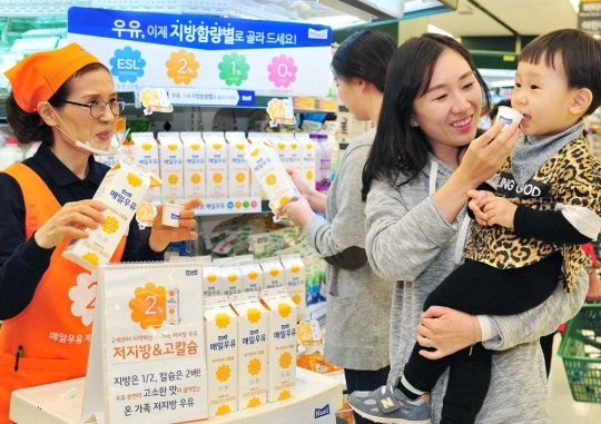 매일우유가 한 마트에서 신제품인 '저지방&고칼슘 2%'의 시음행사를 펼치고 있다./매일우유 제공