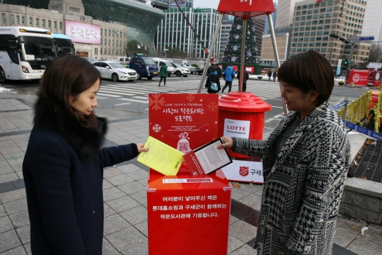 롯데홈쇼핑은 이 일환으로 12월 한 달간 세종문화회관, 덕수궁 대한문 등 구세군 자선냄비가 설치된 서울 시내 여섯 곳에 기부함 '레드박스'를 운영하고 도서를 기증 받는다.