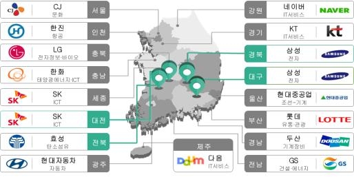 지역혁신역량을 모으는 창조경제거점으로 전국에 창조경제혁신센터도 구축됐다. 대기업과 1:1 전담 지원체계를 구축해 대구-삼성, 대전-SK, 전북-효성, 경북-삼성에 혁신센터가 개소됐다.