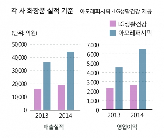 아모레퍼시픽 관계자는 "해외 사업은 비중이 2013년도 17.6%에서 지난해 21.5%로 늘었다"며 "국내도 면세 채널과 아리따움이 성장하면서 좋은 실적을 냈다"고 말했다.