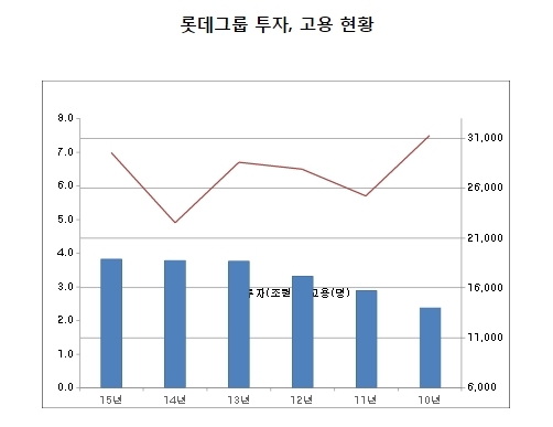 롯데그룹이 15일 발표한 올해 투자·고용 계획에 따르면 올해 그룹 전체 투자액은 7조5000억원으로 지난해(5조7000억원)보다 32% 늘어날 예정이다. 지난 2010년 7조원보다도 50000억원 정도 많은 역대 최대 수준이다. 올해 채용 인원도 지난해보다 늘어난 1만5800명으로 정했다.