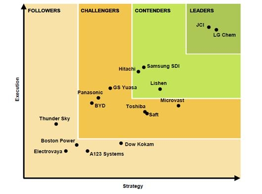 LG화학과 존슨 컨트롤은 최상위인 리더 그룹으로 분류돼 시장을 선도해 나가고 있는 것으로 평가받았다.