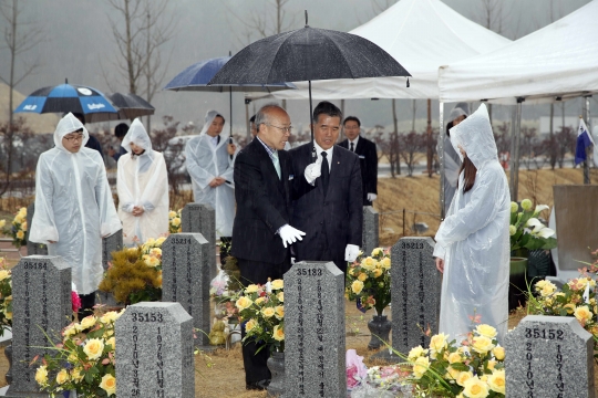 천안함 사건 5주기를 앞두고 18일 한화그룹 임직원은 천안함 유가족과 대전현충원을 찾아 천안함 용사 46명의 희생정신과 숭고한 뜻을 기렸다.