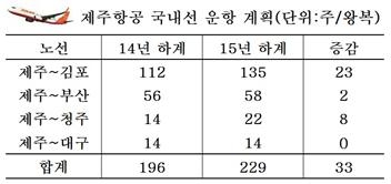 제주항공 연도별 국내선 공급석 추이 (단위: 석)