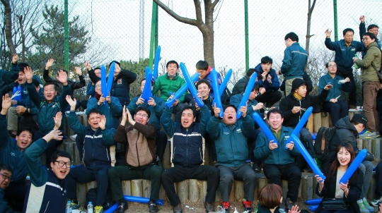 응원을 펼치고 있는 현대중공업 특수선생산 1·2부 응원팀