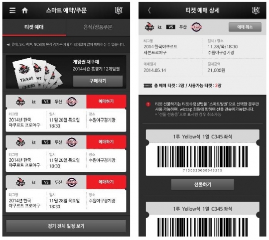 위잽을 내려받은 관객들은 kt 위즈 홈 경기에 한해 전 경기 티켓 예매를 할 수 있고 예매 후 각종 할인·결제까지 한 번에 가능하다. 또 결제 후 모바일 티켓으로 '스마트 발권', 경기 당일 위잽으로 입장할 수 있다.