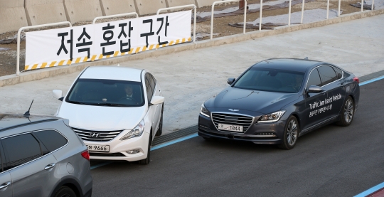 '혼잡구간 주행지원 시스템'은 ▲저속 구간에서도 구현이 가능하고 ▲가다서다를 반복하는 도심 구간에서도 앞차와의 거리 유지 및 차선유지 주행이 가능할 뿐만 아니라, 특히 ▲차선 인식이 불가능할 경우에도 레이더와 카메라로 주변 차량과 사물을 종합적으로 판단해 부분적인 자율주행이 가능한 것이 가장 큰 특징이다.