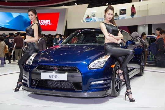 4일 일산 킨텍스 서울모터쇼 닛산 부스에서 GT-R 블랙에디션을 모델들이 소개하고 있다.