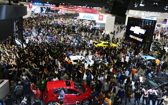 박지성을 보기 위해 쉐보레 부스 앞에 모인 관람객들