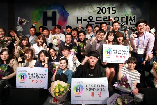 28일 서울 종로구 위치한 나인트리컨벤션에서 'H-온드림 오디션 4기'에 선정된 수상자들이 기념 촬영을 하고 있다.