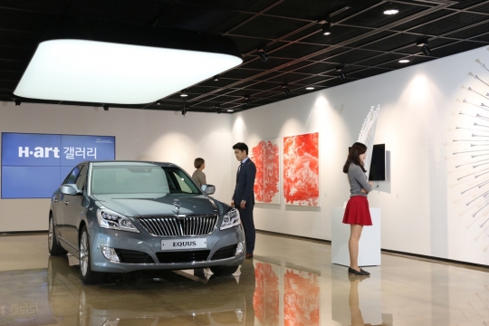현대차 대치지점 H-Art 갤러리에서 고객들이 예술 작품을 감상하고 있다.