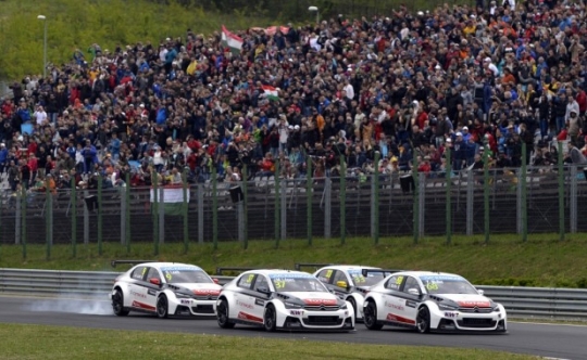 지난 주말 헝가리 헝가로링 서킷에서 열린 2015 WTCC 헝가리대회 1라운드에 출전한 시트로엥 C-엘리제WTCC 차량이 트랙을 달리고 있다.