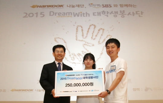 8일 한국타이어 아카데미하우스에서 열린 지역아동센터 대학생 봉사단 발대식에 참석한 단원들이 단체사진을 찍고 있다.
