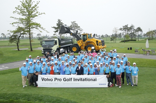 인천 송도 잭 니클라우스 골프클럽에서 열린 볼보 아마추어 골프대회 참가자들이 단체사진을 찍고 있다.