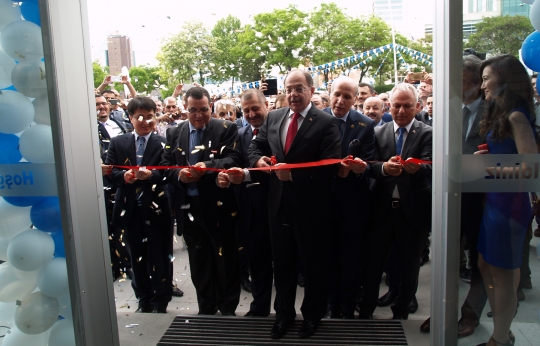 25일 터키 앙카라에서 열린 쌍용차 대리점 개소식에 니하트 사슈바로글루 터키대리점 대표(왼쪽 세 번째)를 비롯한 관계자들이 참석해 축하 테이프를 자르고 있다.