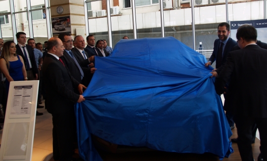 25일 터키 앙카라에서 열린 쌍용차 대리점 개소식에 참석한 유누스 사슈바로글루(Yunus Sahsuvaroglu) 터키대리점 부사장(차량 오른쪽)을 비롯한 관계자들이 티볼리 언베일링을 진행하고 있다.
