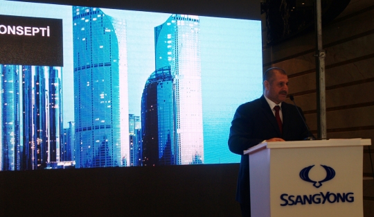 25일 터키 앙카라에서 열린 쌍용차 대리점 개소식에 참석한 니하트 사슈바로글루 터키대리점 대표가 참가 언론 및 관계자들에게 인사말을 건네고 있다.