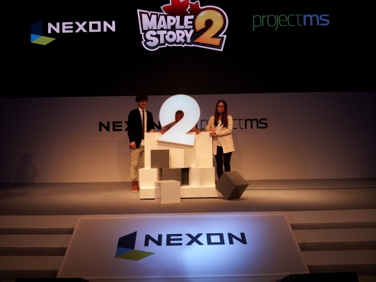 29일 열린 메이플스토리2 미디어 쇼케이스에서 김진만 총괄디렉터, 장성경 사업실장, 오미영 기획팀장이 포토타임을 갖고 있다.