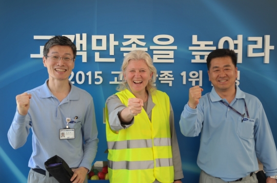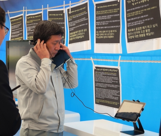 이기인 르노삼성 제조본부장이 고객의 소리를 듣고 있다.