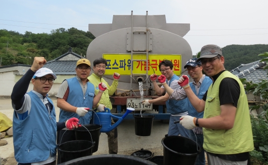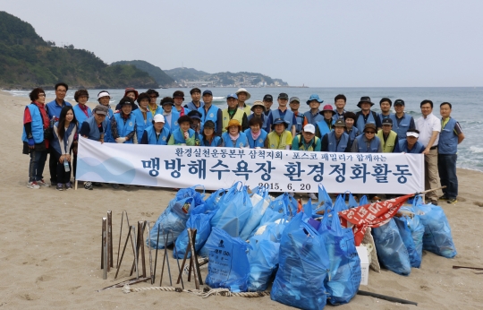 20일 포스코에너지와 포스파워 임직원 및 환경실천운동본부 삼척지회 회원들이 삼척지역에서 봉사활동을 펼치고 있다.
