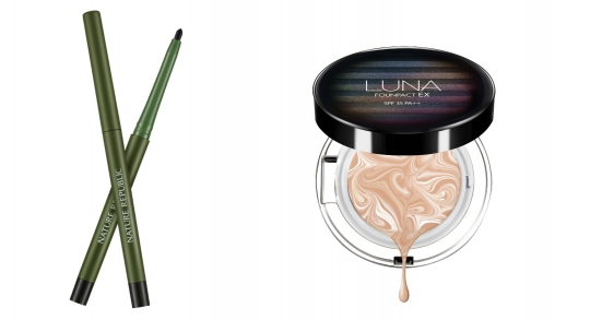 네이처리퍼블릭은 보테니컬 워터프루프 아이라이너(좌), 애경 루나 워터 에센스 파운팩트 EX(우)/각 사 제공