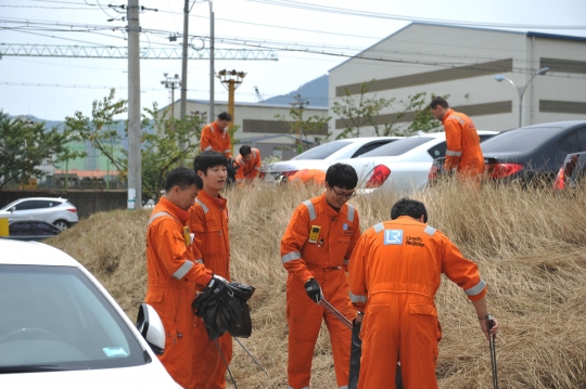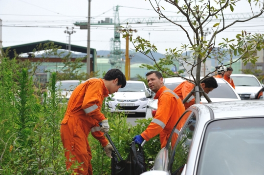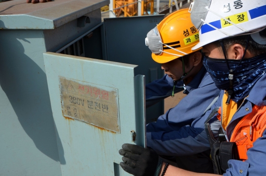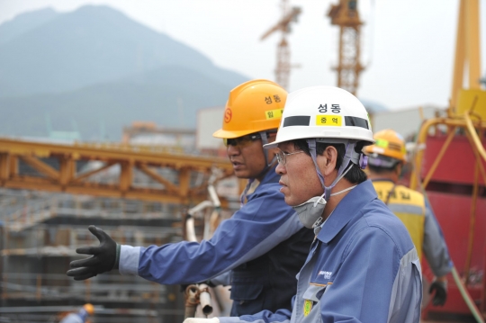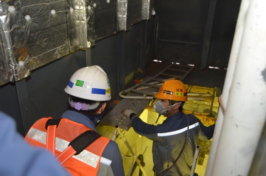 성동조선 안전관리 담당자가 현장 안전점검을 실시하고 있다.