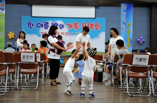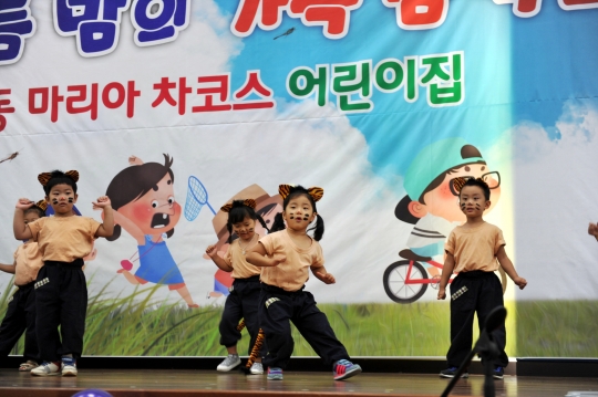 성동마리아차코스어린이집 원생들이 가족음악회 행사에서 즐거운 한 때를 보내고 있다. / 성동조선해양 제공