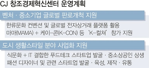 CJ는 우선 한류문화 컨벤션·글로벌 전자상거래 플랫폼 등을 활용해 벤처·중소기업의 글로벌 판로 개척에 힘을 싣는다.