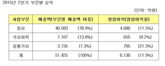 에쓰오일 2분기 부문별 실적 / 에쓰오일 제공