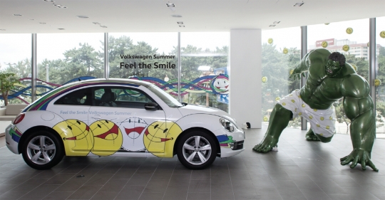 유카로오토모빌 부산 해운대 전시장에 전시된 더 비틀(왼쪽)과 폴로 차량