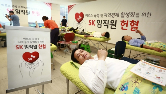 메르스로 인해 혈액 수급에 문제가 있다는 소식을 접한 SK그룹은 지난달 전사적인 헌혈 캠페인을 전개했다. SK그룹은 서울, 울산, 이천 등 100인 이상 임직원이 근무하는 사업장에서 자율적인 헌혈 운동을 벌였다.