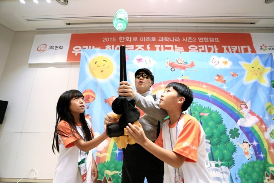 '한화로 미래로 과학나라' 1박 2일 여름캠프에 참가한 어린이들이 과학 체험을 하고 있다. / 한화 제공