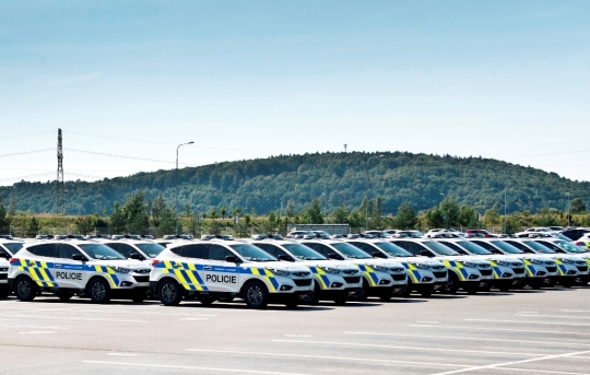 체코 경찰청에 공급될 ix35 경찰차가 출고 대기 중이다.