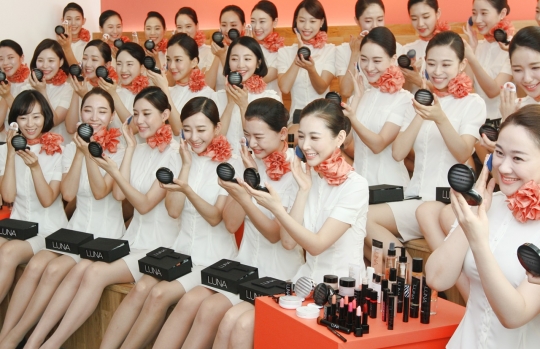 [포토] 제주항공 신입승무원들의 풀메이크업 현장