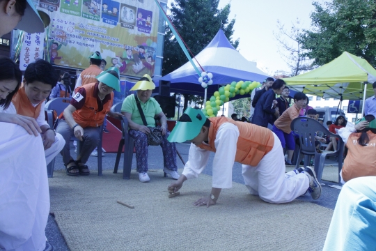 16일 '한화와 함께하는 추석맞이 전통놀이 한마당'행사에 참석한 지역주민들이 윷놀이를 즐기고 있다. / 한화 제공