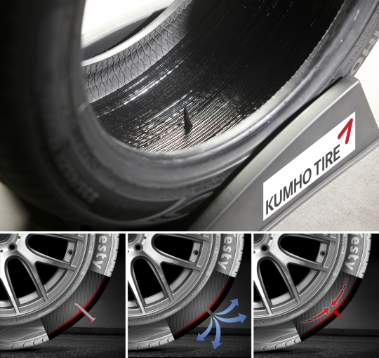 또 펑크 시 자가봉합(self-sealing) 기능을 통해 공기 누출을 막아주는 실란트 타이어와 안전 주행을 위한 런플랫 타이어 등을 전시했다.