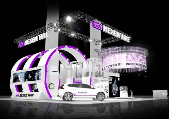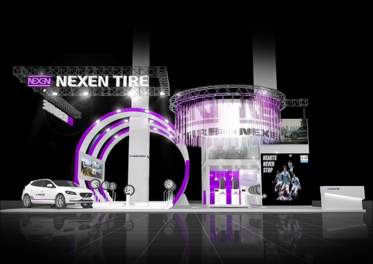 넥센타이어는 13개 제품을 4개 구역으로 나눠 소개하고 있다.