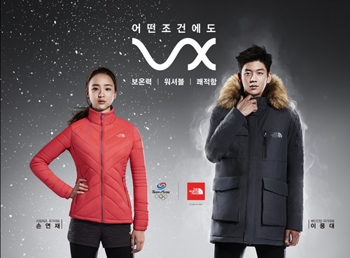 'VX 슬림 2 재킷'(손연재), 'VX 맥머도 파카'(이용대) 착장컷. 사진=노스페이스 제공