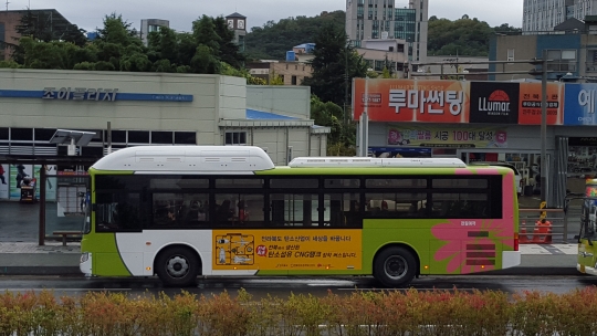 효성의 탄소섬유로 만든 CNG 용기가 장착된 전주시 시내버스 / 효성 제공