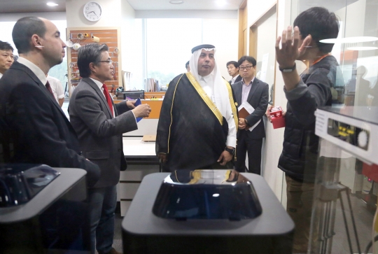 투르키 사우드 빈 모하메드 알 사우드 사우디아라비아 과학기술처장(사진 오른쪽 두번째)이 19일 대전센터를 방문 임종태 센터장의 안내를 받으며 시제품제작소를 견학하고 있다