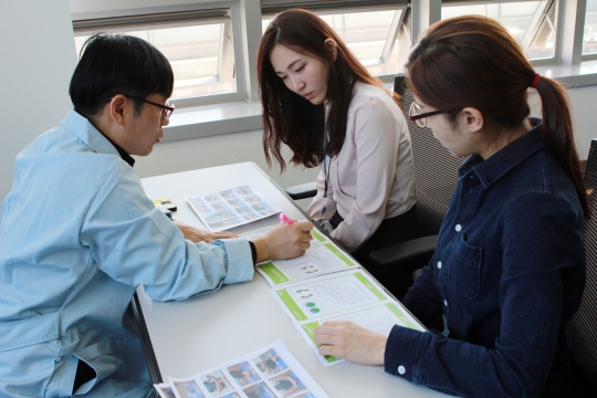 28일 NH농협생명 직원들이 '보행습관 및 신체균형 클리닉'에서 상담을 받고 있다.
