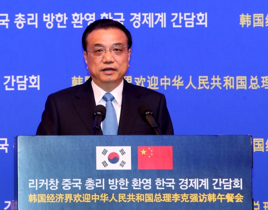 대한상공회의소, 전국경제인연합회 등 경제 5단체는 이날 서울 중구 신라호텔에서 '리커창 중국 총리 초청 한국 경제계와의 간담회'를 개최했다. 이날 간담회에는 박용만 대한상의 회장(두산그룹 회장), 정몽구 현대자동차그룹 회장, 최태원 SK 회장, 이재용 삼성전자 부회장, 손경식 CJ그룹 회장, 박삼구 금호아시아나그룹 회장, 권오준 포스코 회장, 이웅열 코오롱그룹 회장 등 한국 기업인 200여명이 참석했다.