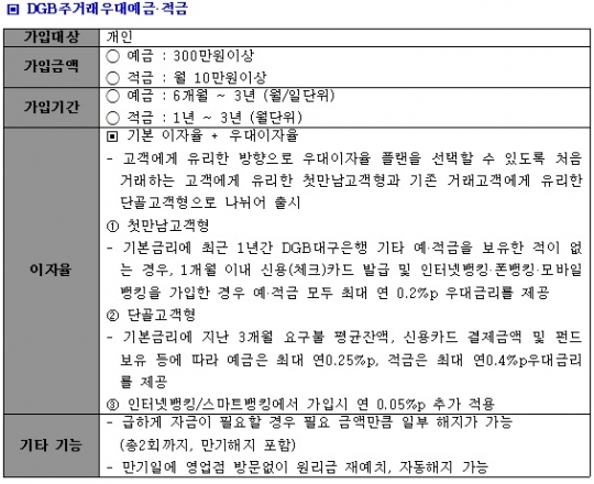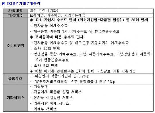 DGB대구은행(은행장 박인규)은 계좌이동제에 맞춘 특화상품 주거래우대통장·예금·적금을 출시해 판매한다고 2일 밝혔다.
