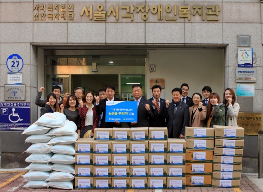 NH농협생명은 4일 89회 점자의 날을 맞아 시각장애우들을 위한 농산물꾸러미를 서울시각장애인복지관에 전했다.