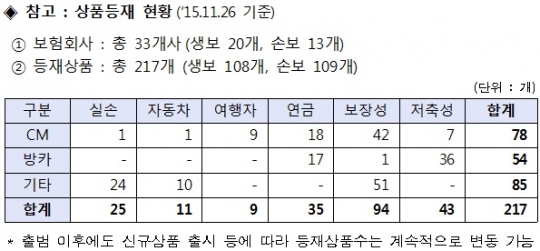 현재 보험다모아에는 33개사(생보 20개, 손보 13개)의 217개(생보 108개, 손보 109개) 상품이 등재됐다.