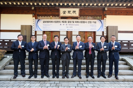 1일 서울 삼성동 삼청각에 브라이언 강 Nautilus Venture Partners 대표, 궈이홍 DG Capital Partners 파트너, 로버트 버치 Red Badge 대표, 민경진 산업은행 부행장, 최용호 금융위원회 산업금융과장, 김영규 기업은행 부행장, 서상철 산은자산운용 대표이사, 야스히코 유리모토 Global Brain 대표, 박성빈 Translink Capital 대표(왼쪽부터)가 모였다.