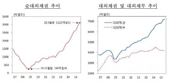 우리나라 순대외채권이 3000억달러를 처음으로 넘어섰다. 순국제투자잔액은 1900억달러를 돌파했다.