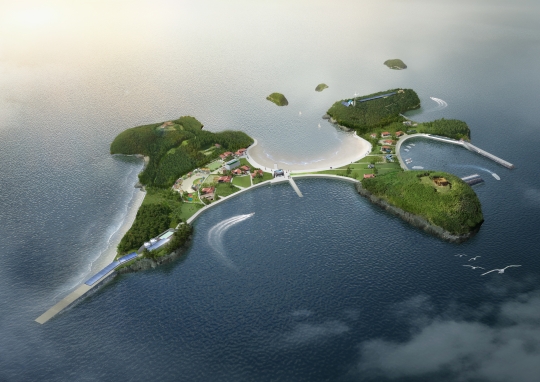 한화S&C가 오는 5월 완공을 목표로 조성하고 있는 충청남도 홍성군 죽도 에너지 자립섬 조감도. /한화S&C