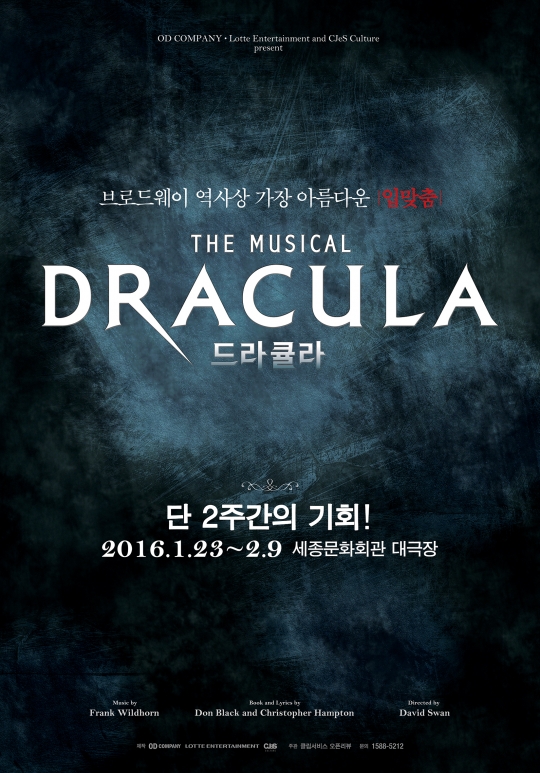 먼저, 뮤지컬 '드라큘라'는 2014년 한국 초연 이후 더욱 완성도를 높여 관객을 찾아왔다. 아일랜드 소설가 브램 스토커의 동명 소설을 천재 작곡가 프랭크 와일드혼의 음악으로 버무린 작품이다. 2014년 한국 초연 당시 프로듀서 신춘수, 작곡가 프랭크 와일드혼, 연출 데이비드 스완, 음악감독 원미솔 등 최고의 크레에이티브 팀이 참여했으며 무대 예술로 제9회 더뮤지컬어워즈 무대상을 수상했다. 재연인만큼 더욱 풍성해진 음악과 디테일한 연출을 감상할 수 있다.