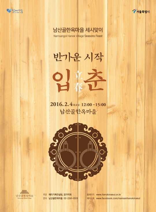 연희그룹 '유희'의 풍물공연도 행사와 함께 진행되며, 입춘의 풍속인 '오신반' 시식도 마련됐다. 행사에 대한 자세한 정보는 남산골한옥마을 홈페이지(www.hanokmaeul.or.kr)에서 확인할 수 있다.